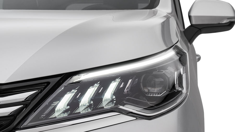 Đèn pha Projector được thiết kế với hình dáng cánh chim, mang đến vẻ hiện đại, hài hòa từ góc nhìn phía trước và bên hông.