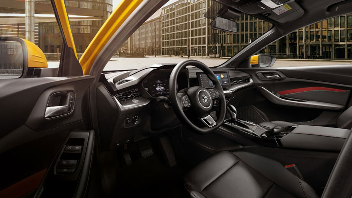 MG5 sở hữu không gian rộng rãi, khoang nội thất được thiết kế theo kiểu dáng thể thao với ghế lái chỉnh điện 6 hướng. Cửa sổ trời và taplo thiết kế sang trọng với họa tiết hình Kim cương mang đến cho bạn những giây phút thú vị.